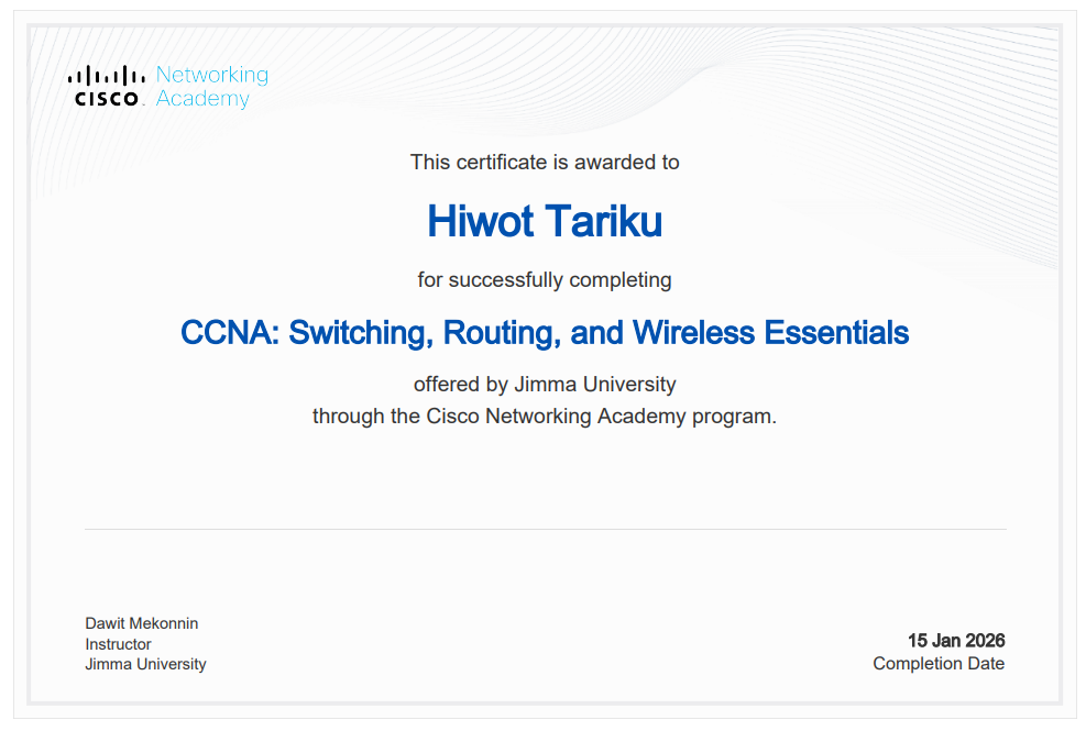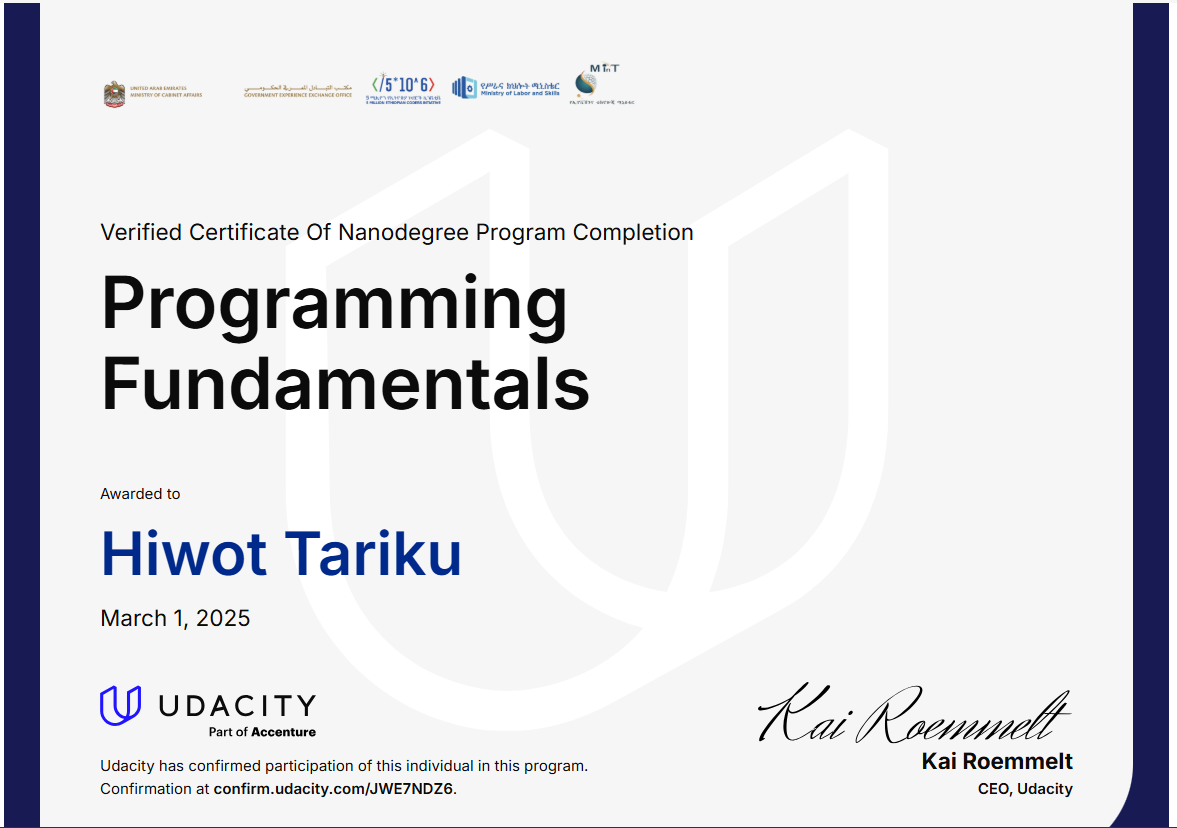 It is with great pleasure that I write this letter of recommendation for Hiwot Tariku Menjiye, who successfully completed a three-month internship at Tina Mart (Tina Business Group PLC). During her internship period, Hiwot worked closely with our team on real-world projects, including improving our affiliate company Ibex.et’s website using Laravel. She demonstrated solid technical skills in both back-end and front-end development, showing professionalism, dedication, and a strong ability to adapt to complex tasks. Hiwot consistently delivered high-quality work and proved to be a reliable, productive, and enthusiastic team member. She has shown the potential to excel in any environment that requires strong problem-solving abilities, technical expertise, and collaboration. We at Tina Mart highly recommend her for job opportunities, internships, and other professional engagements. Furthermore, we look forward to future opportunities to collaborate with her and wish her every success in her career and personal endeavors.